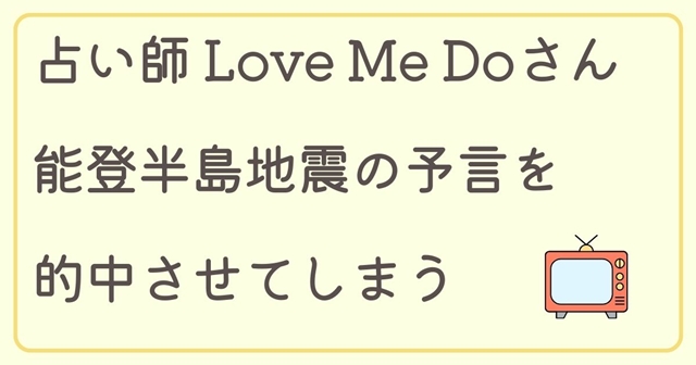 占い師のLove Me Do(ラブ・ミー・ドゥ)さんが、1月1日の石川県で起こった地震を予言していたと話題になっています。